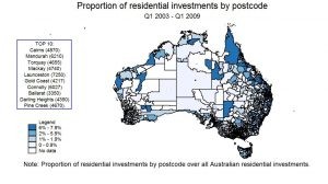 Most residential investors choose rural and regional areas to invest. Many residential investors choose to buy property in big metropolitan cities like Sydney and Melbourne. However, the top 10 postcodes chosen by residential investors to buy property (between 2003 and 2009) include Cairns (QLD), Mandurah (WA), Torquay (VIC), Mackay (QLD) and Launceston (TAS).
